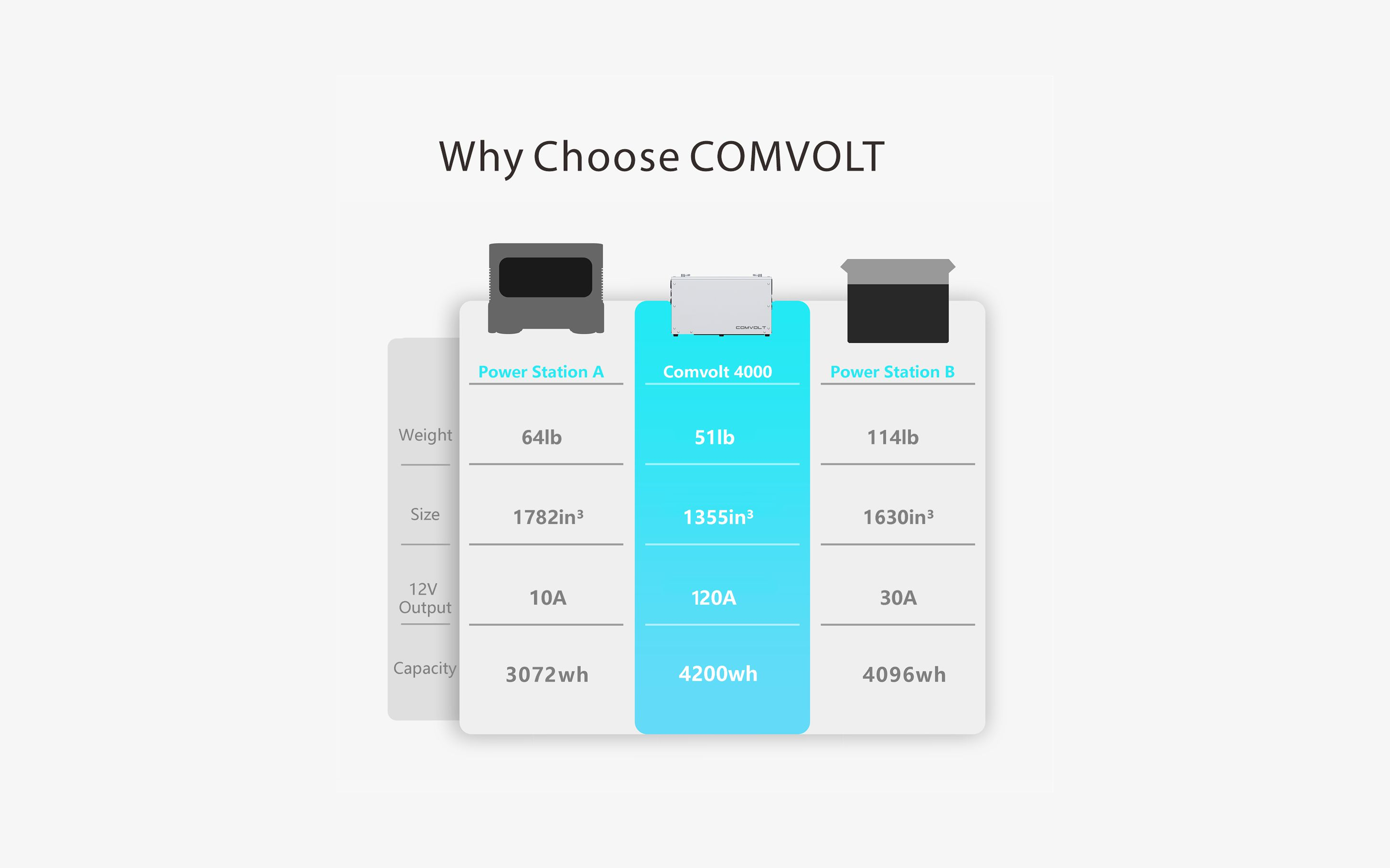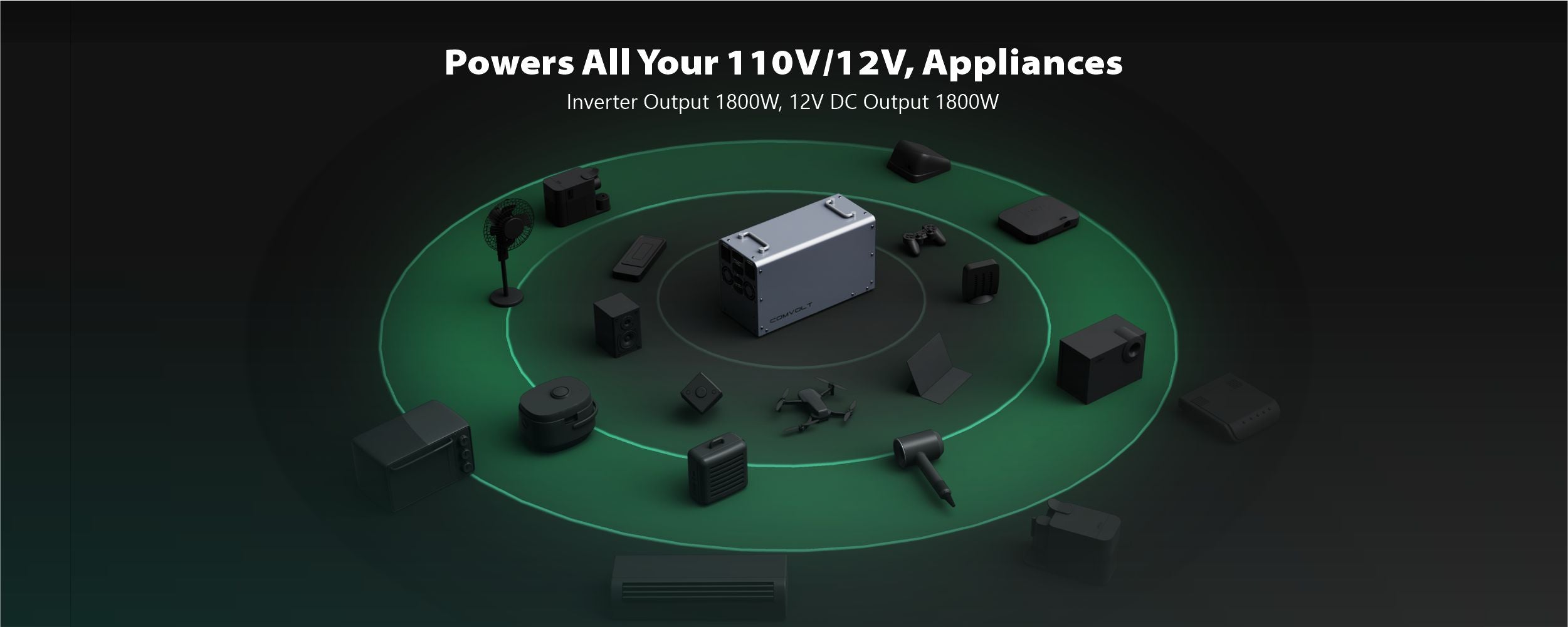 Unmatchable 120A 12V Input/Output — the only power station built for 12V air conditioners.